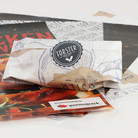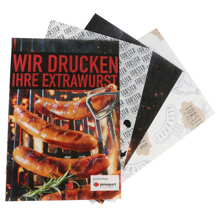 Fleischwickelpapiere bieten trotz geringem Materialeinsatz eine dauerhafte Barriere gegen Feuchtigkeit, Fette und Öle. Wir fertigen die Einschlagpapiere für Fleisch- und Wurstwaren aus unterschiedlichen Materialien. Seit Kurzem gehört auch trennbares und deshalb nachhaltiges bzw. recyclingfähiges Wickelpapier zu unserer Auswahl an Einschlagpapieren. Bei dieser Variante wird eine hauchdünne Folie mittels Punktverklebung auf ein individuell bedrucktes Trägerpapier aufgeklebt. Nach Gebrauch kann die Folie vom Konsumenten einfach und hygienisch vom Papier getrennt und beide Komponenten separat entsorgt bzw. recycelt werden.
