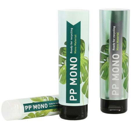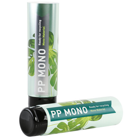 Unsere recycelbare Mono-Tube «Green Motion» besteht vom Laminat, über Schulter und Flip-Top-Verschluss bis hin zum Decoseamband aus sortenreinem Polypropylen und kann nach der Verwendung gänzlich recycelt werden. Die Mono-Tube ist vom Institut cyclos-HTP als recyclingfähig zertifiziert.
