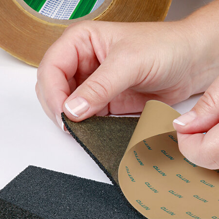 Das doppelseitige Klebeband Nitto 5015T eignet sich für die Verklebung von Schäumen in der Automobilindustrie und für Verklebungen in der Metall- und Elektroindustrie und bei Anwendungen, wo der Kleber einer hohen Beanspruchung ausgesetzt wird.