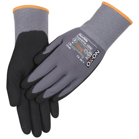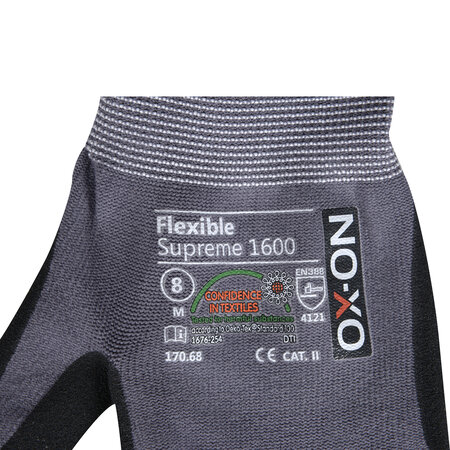 Der OX-ON Flexible Supreme 1600 ist der meistverkaufte OX-ON-Handschuh. Hierbei handelt es sich um einen exklusiven und langlebigen Allround-Handschuh für alle ist, die sowohl ein optimales Tastgefühl als auch einen effektiven Schutz benötigen - ganz gleich, ob Sie mit Metall- und Kunststoffverarbeitung, Lager- und Kommissionierarbeiten, Wartungs- und Reparaturarbeiten oder Montagearbeiten beschäftigt sind. Wenn Sie den flexiblen Handschuh tragen, liegt er perfekt an Ihrer Hand an und Ihre gesamte Handfläche und die Finger sind mit einer Nitrilschaumbeschichtung versehen, die Ihnen einen präzisen Griff beim Arbeiten in trockener Umgebung bietet. Der OX-ON Flexible Supreme 1600 besteht aus Nylon und Elasthan und ist somit an Hand und Handgelenk vollständig atmungsaktiv. Dies macht den Strickhandschuh geschmeidig und bequem, wenn Sie sicheren Halt benötigen. Dieser Handschuh ist gleichzeitig Oeko-Tex-zertifiziert, was garantiert, dass Ihr Handschuh keine gefährlichen Chemikalien oder Farbstoffe enthält.