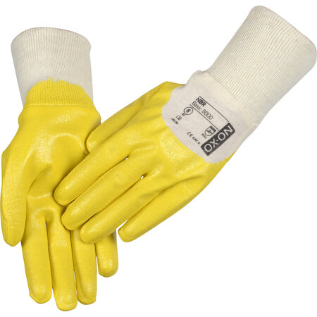 Der OX-ON NBR Basic 8000 ist der preiswerte Handschuh für alle, die in nassen Umgebungen mit Abwasser-, Maurer- oder Bauarbeiten, Müllentsorgung, Anlagenarbeiten, im Transportwesen oder in der Industrie beschäftigt sind. Handfläche und Finger bis hin zu den Knöcheln sind mit gelbem NBR-Nitril überzogen, das Ihnen einen festen Griff beim Arbeiten in nasser Umgebung ermöglicht. Der Handrücken ist aus Baumwolle, die sich angenehm an der Hand anfühlt und der Haut Raum zum Atmen gibt. Das Rippenbündchen schließt eng am Handgelenk und sorgt für eine besonders gute Passform. Der NBR Basic 8000 ist ein funktioneller und strapazierfähiger Arbeitshandschuh, der Ihr Tastgefühl erhält und Ihre Hand während der Arbeit schützt.