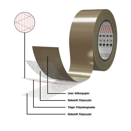 - Hohe Anfangs- und Dauerklebkraft sowie gute Kaltfliesseigenschaften auf äusserst rauen und sehr porösen Untergründen