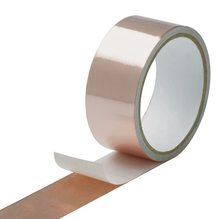 Das Kupfer-Klebeband Permafix 9572 mit leitendem Kleber eignet sich für Hochfrequenz-Abschirmung gegen elektromagnetische und radiofrequenzielle Störungen bei kleinen elektromagnetischen Teilen wie Transformatoren- und Reaktor-Spulen. Auf Papierliner.