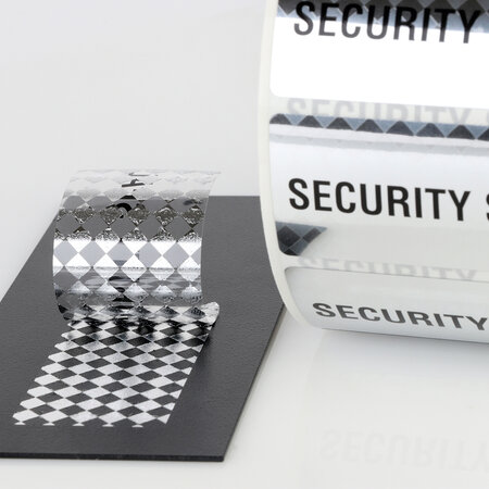 Die selbstklebende Sicherheitsetikette hinterlässt beim Öffnen ein Schachbrettmuster auf dem Untergrund. Dieser «Manipulations-Vermerk» bleibt permanent bestehen und zeigt deutlich an, dass eine Verpackung geöffnet wurde.