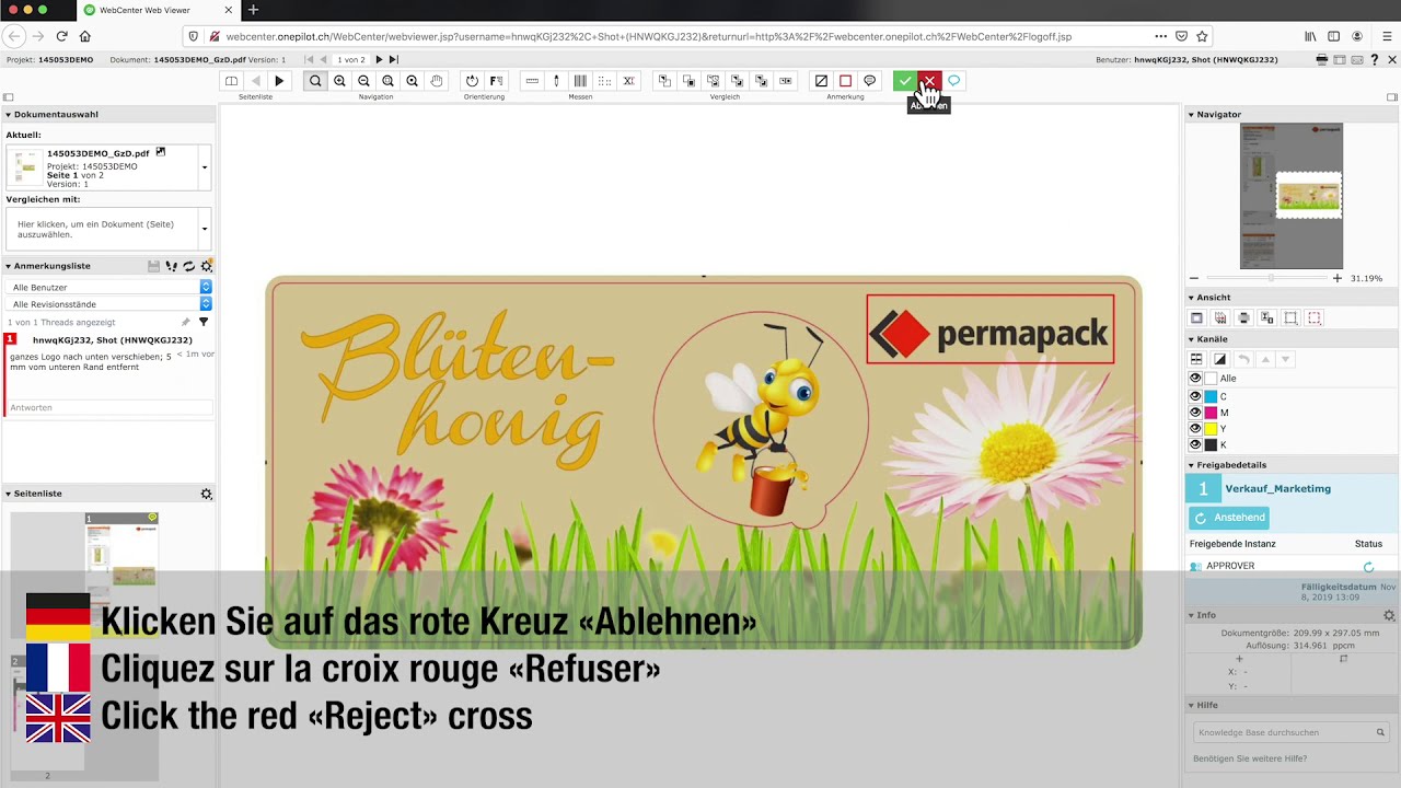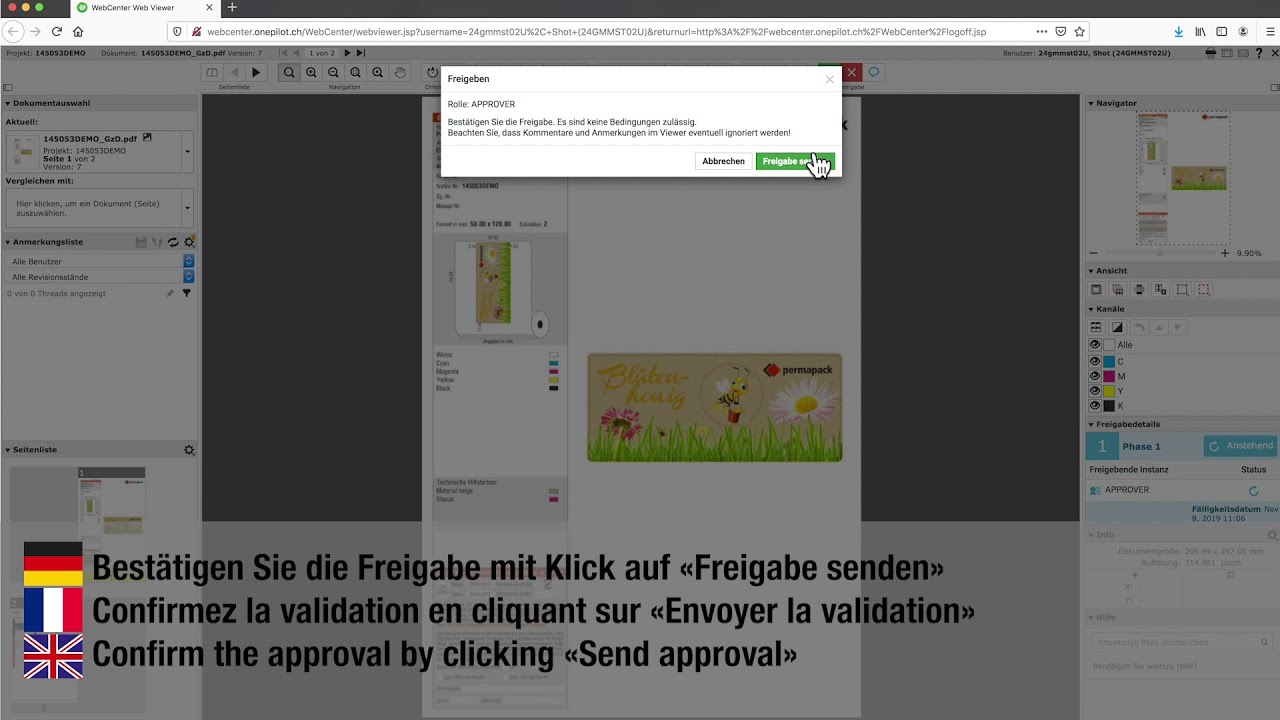 Unser onePILOT WebCenter ermöglicht Ihnen einen zügigen, digitalen Freigabeprozess für Ihr Gut zum Druck. Die folgenden Video-Anleitungen unterstützen Sie bei der Bedienung der Software und demonstrieren die gängigsten Anwendungsschritte im Freigabeprozess: