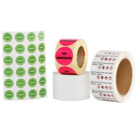 Nous livrons les étiquettes destinées à l'identification des produits ou au contrôle des processus et de la logistique au choix en rouleaux, en feuilles ou découpées individuellement.