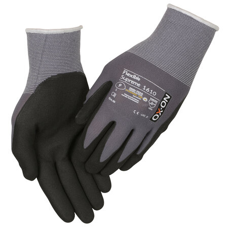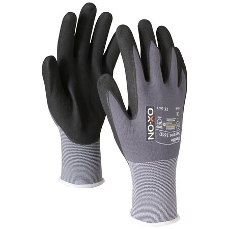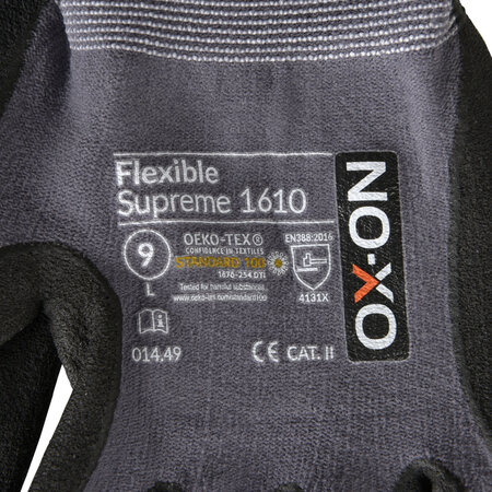 Der OX-ON Flexible Supreme 1610 ist ein exklusiver und sehr strapazierfähiger Alleskönner für alle, die optimales Fingerspitzengefühl und effektiven Schutz suchen, egal ob z. B. Schreiner-, Maurer-, Schleif-, Fahrzeug- oder Montagearbeiten. Er passt sich der Passform Ihrer Hand an. Die gesamte Handfläche und Finger sind mit Nitrilschaum beschichtet, was auch bei Arbeiten in leicht feuchter Umgebung für einen genauen Halt sorgt. OX-ON Flexible Supreme 1610 ist aus kräftigem Nylon und Elastan und deshalb atmungsaktiv an Handrücken und Handgelenk, wodurch der Strickhandschuh sehr geschmeidig und angenehm ist, wenn Sie einen sicheren Halt benötigen. OX-ON-Handschuhe sind alle OekoTex-zertifiziert, was Ihre Garantie dafür ist, dass die Handschuhe keine gesundheitsgefährdenden Chemikalien oder Farbstoffe beinhalten.